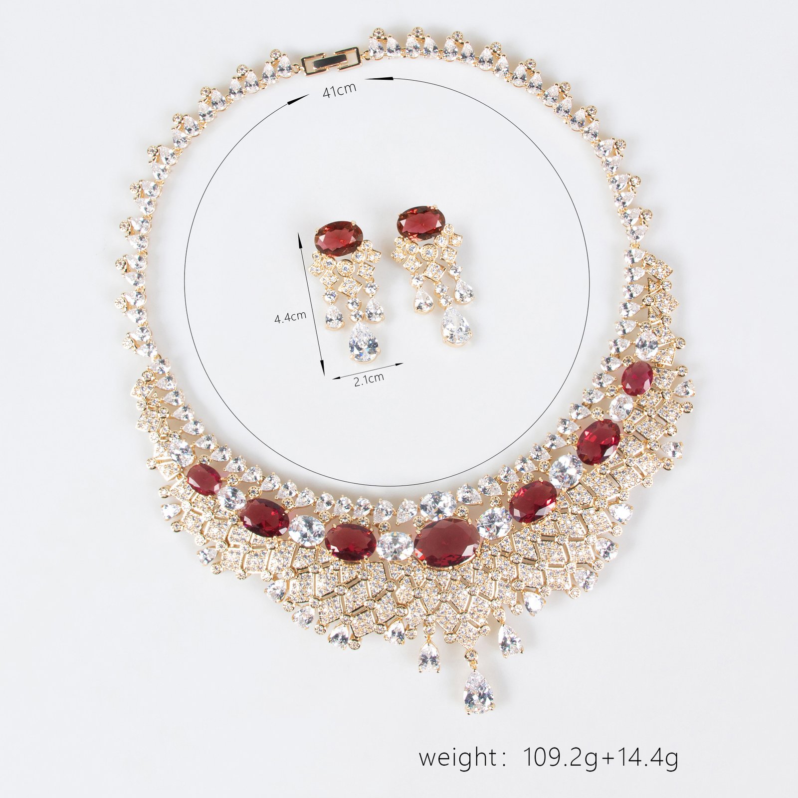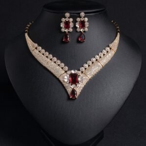 Hot-selling luxury fashion sparkling jewelry zircon evening gown set necklace and earrings